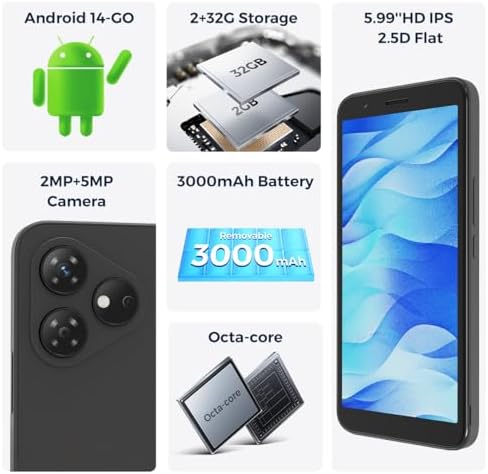 【256GB Expandable Storage】:2GB RAM + 32GB built-in storage, expandable up to 256GB via microSD! Perfect for seniors/kids to snap photos without deleting favorites, and professionals to store work files—no more worrying about running out of space. Ample room for memories, docs, and more, fitting the whole family’s needs.