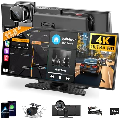 ⭐【Exclusive 11.5″ Carplay Screen】11.5-inch a-pple carplay screen for car is compatible with CarPlay and Android Auto, the largest touchscreen on the market, offers greater clarity for an enhanced video viewing experience. The touchable and viewable screen is larger than the 10.26-inch carplay screen, and the height of the portable carplay screen has been lowered compared to the 9-inch car play screen to address the issue of an obstructed driver’s view. Safer to use.
