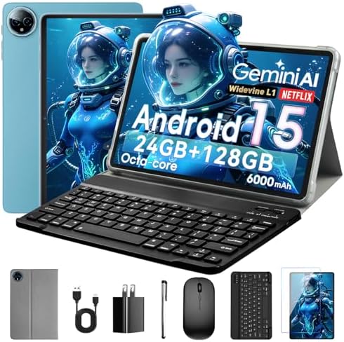 【Large Storage Space】This Android tablet has 128GB ROM, 24(8+16)GB RAM, 1TB additional expansion, which can store more movies, videos, music, and work software for you, and supports Netflix, Facebook, Tik Tok, Youtube, and other software, you can play more comfortably games, download and preview rich movies, and accommodate massive work files.