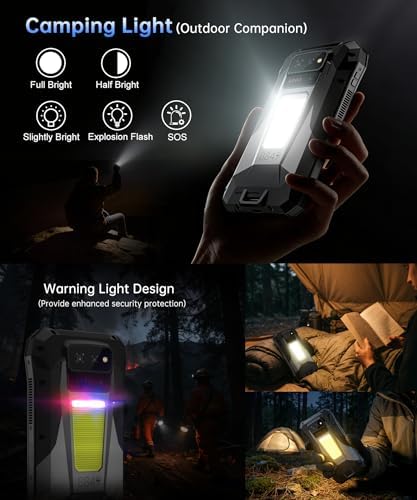 【Versatile Lighting】The 8849 Tank X isn’t just a phone, it’s your outdoor superhero.This smartphone boasts a1200LM camping light that will dispel darkness from campsites, trails, and emergency situations.Switch between 5 modes like SOS, strobe,and full/half brightness for the perfect ambiance or to signal for help. And it’s not afraid of a little drizzle! The Tank X is waterproof, shockproof, and dustproof, ready to conquer any adventure. Plus, it equips warning signal lights for extra safety