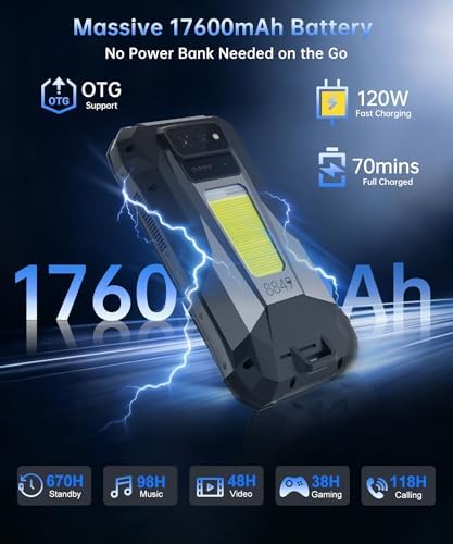 【Long-lasting Battery & Fast Charging】The 8849 Tank X isn’t just an unlocked rugged phone – it’s your portable power station! Its massive 17600mAh battery grants extended adventure sessions, while the OTG function transforms it into a power bank in a pinch, recharging your devices when their juice runs low. And when it needs a refill itself, the 120W fast charging full charge in just around 70 mins, so you can ditch the battery anxiety and focus on the fun. Get ready to unleash your adventure