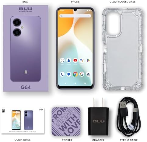 Box Content: G64, Rugged Case, Charger, USB Type-C cable, Quick guide and Sticker.