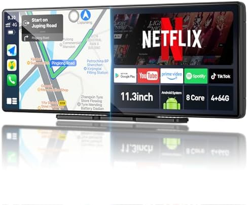 Home Android 11.3″ QLED Android 8Core 4G+64G Carplay Screen for Car Android Auto & Carplay Screen with Netflix YouTube Google Play AI 1080P Rear Camera Split Screen GPS Navigation Voice Control