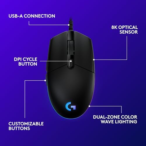 Step up to gaming grade with 8,000 DPI optical sensor with zero filtering and smoothing for improved control and precision over standard computer mice with G203 wired mouse