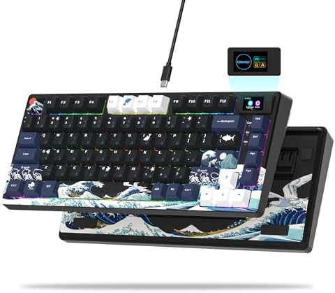 Vibrant Color Multimedia Screen: The DIY multimedia display screen design in the upper right corner of the keyboard allows you to visualize in custom gif image, caps lock, connection mode, WIN/MAC, system, backlit brightness/speed, RGB mode/color, volume & language and more. Display screen 11°oblique angle height will be more in line with visual habits.