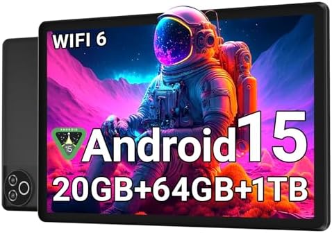 Home Android Android 15 Tablet 10 Inch, 20GB RAM 64GB ROM 1TB Expandable, Fast WiFi 6 & BT 5.4 Tablets 5-Core, HD IPS Touchscreen, 8H+ Battery, Dual Camera Portable Tablet for Kids & Adults, Gift, Streaming, Work