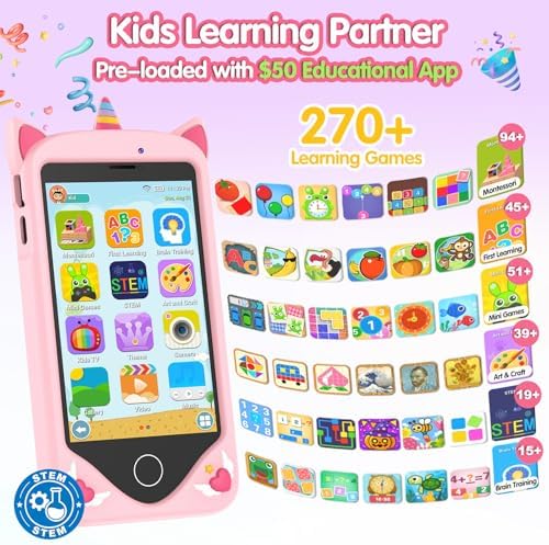 Over 270+ Educational & Entertainment Content: Loaded with Montessori learning apps, STEM activities, logic games, children’s videos, and fun themes, this toddler phone makes learning enjoyable. It encourages creativity, problem-solving, and healthy screen time through interactive educational play.
