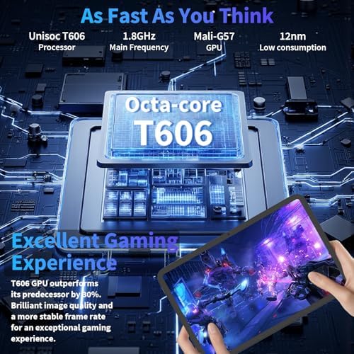 【2026 Android 15 + 2.0GHz CPU + Gemini AI 2.0】The new 10 inch tablet is powered by the fast, smart and secure Android 15 OS with powerful built-in T606 Octa-core processors for an efficient and smooth streaming experience. No hassle from Bloatware. This AI tablet comes with the Gemini AI engine, enjoy intelligent task optimization, faster app response, and smarter performance. Enhanced features like split-screen multitasking and blue light reduction mode make the tablets ideal for productivity and eye comfort. Access millions of apps through the Play Store