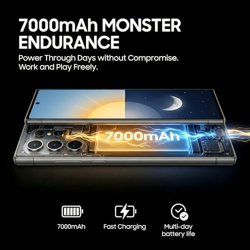 🔋【MASSIVE 7000MAH ALL-DAY BATTERY & 5G SPEED】Forget battery anxiety! The colossal 7000mAh battery keeps you powered for extended periods – enjoy up to 40 hours of video playback, 33 hours of talk time, or an incredible 550 hours on standby. Combined with ultra-fast 5G connectivity, you can stream, download, and game without interruption, wherever you go.