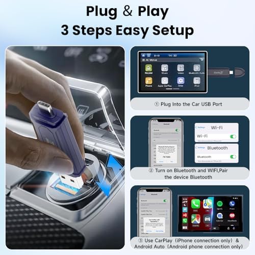 Plug and Play, Smart Connection: Get started quickly with wireless CarPlay or Android Auto in just 3 steps of setup, no additional drivers required. Once paired, the wireless adapter automatically reconnects every time. Enjoy the convenience of seamless connectivity with just one setup