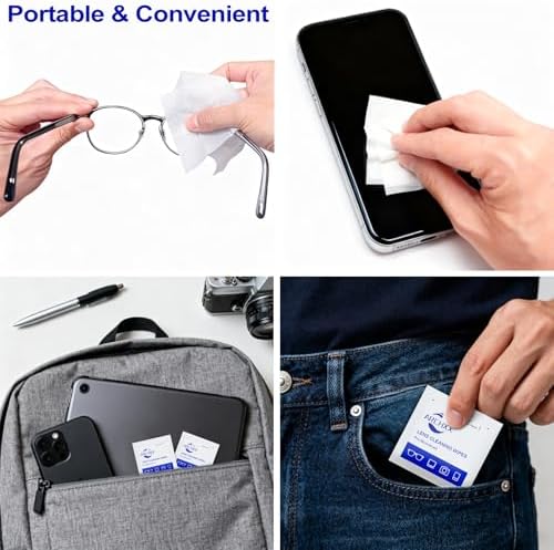 【Portable Everyday】Each eye glass cleaner wipe comes lens wipes individually wrapped for cleaning and easy use. Perfect for travel, office, or car, these eyeglass wipes individually wrapped deliver quick, streak‑free cleaning anytime, anywhere.