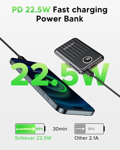【22.5W Super Fast Charging & 10000mAh Capacity】 Experience high-speed power with advanced PD and QC technology. This portable charger delivers a blazing 22.5W output, charging an iPhone from 0 to 60% in just 30 minutes. The robust 10000mAh power bank capacity rejuvenates your iPhone up to 3.6 times, making it the ideal power bank for iPhone and other devices.It’s the ultimate battery pack charger portable for users on the move.