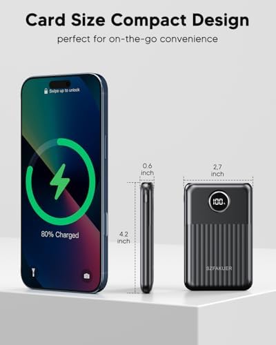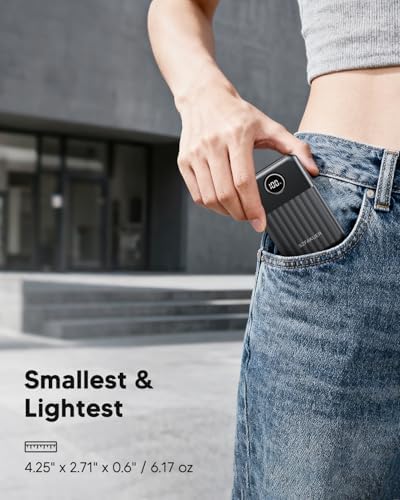 【Ultra-Compact, Lightweight & Portable Design】 Designed for effortless portability. Measuring just 4.25″ x 2.71″ x 0.6″ (10.79 x 6.89 x 1.53 cm) and weighing a mere 6.17 oz (175g), this portable charger power bank is incredibly slim and light. It easily slips into any pocket or bag, making this phone battery charger portable an essential travel companion without adding bulk.