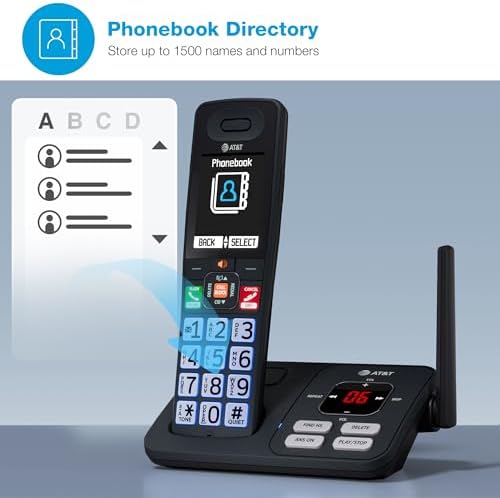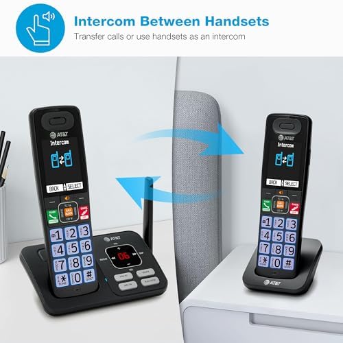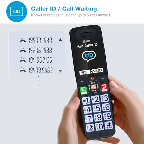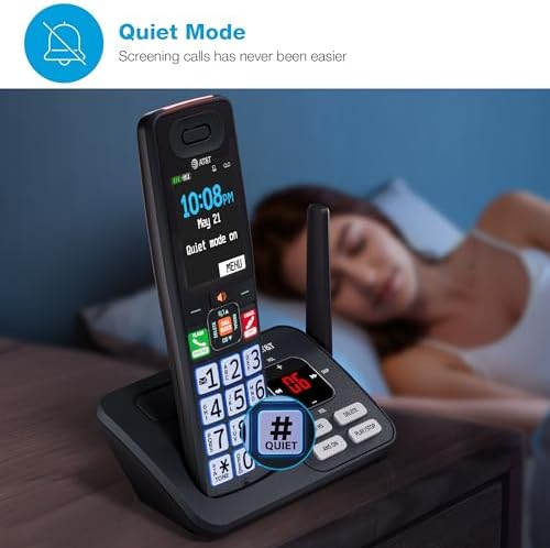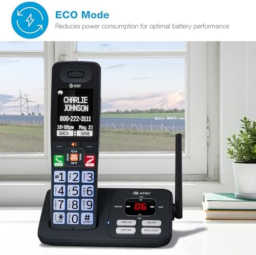 The AT&T BL108-3 (Charcoal & Silver) DECT 6.0 Cordless Phone with 3-Handsets, Smart Call Blocker, Connect to Cell and digital answering system with voice guide is designed to provide you with all of the essential features that a busy household or home office needs. This phone automatically filters out robocalls before they even ring with the built-in Smart Call Blocker, while Connect to Cell can link to your cellular plan, which brings wireless freedom and landline comfort together in one smart solution. The extra-large 2.4-inch color LCD backlit display, coupled with high-contrast text and lighted keypad, provides clear visibility and easier readability in low light conditions. With large backlit keys and easy-to-read text, dialing becomes effortless. The user-friendly design is ideal for anyone with visual impairments or those who simply prefer larger buttons. Whether you’re upstairs, outside, or making dinner, enjoy advanced antenna design, noise-filtering technology, long-range coverage, and reliably clear sound so you’re always connected. With up to 22 minutes of recording time, the digital answering system ensures you never miss a call. Whether you’re cooking, working, or relaxing, the handset announces who’s calling so you can decide whether to answer – all without having to stop what you’re doing.