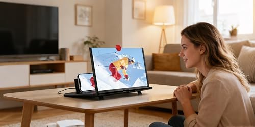 [Folding Design]: HD screen magnifier Storage type rotating folding design. If the height is not enough, height can be adjusted with the ring stand. Super slim when folded and also can be carried around in your bag. Suitable for indoor, camping, journey, leisure, anywhere and etc.