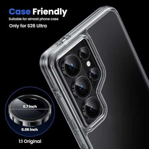 1:1 Case Friendly Design: WSKEN samsung galaxy s26 ultra camera lens protector is 3D texture original design, laser precision cutting, precise hole position, fit almost 99% s26 ultra case.