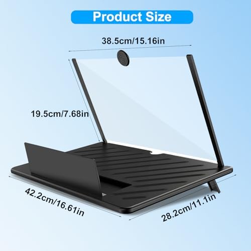 Home Moblie 20″ Phone Screen Magnifier, Screen Amplifier 3D HD Screen Projector with Foldable Stand, Phone Screen Magnifier for Watching Movies, Videos, Games and Reading, Compatible with All Phones (Black)