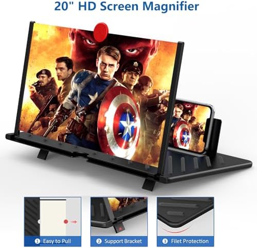 20″ Screen Magnifier,3D HD Mobile Phone Magnifier Projector Screen Enlarger for Movies, Videos, and Gaming,Foldable Cell Phone Stand with Screen Amplifier,Gifts for Mom Dad(Black 20Inch)
