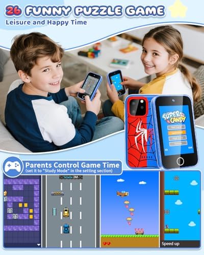 📱This kids phone features a bright 3.5-inch touchscreen, perfectly sized for little hands (ages 3-8). Sensitive and colorful, it lets boys explore like a real smartphone—tapping, swiping, and learning ABCs, landmarks, and fun puzzle games under parental control. No WiFi needed, just pure safe play!