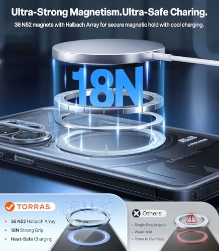 18N Super-Strong Magnetic Hold: No magnets in your phone? No problem! This Galaxy S26 Ultra clear case, with 18N N56SH neodymium magnets and MegaMag technology, instantly makes your phone compatible with wireless chargers and car mounts for MagSafe-style accessories. Keeps your phone locked in place, stable, and wobble-free. Note: This case will not work with non-magnetic car mounts.